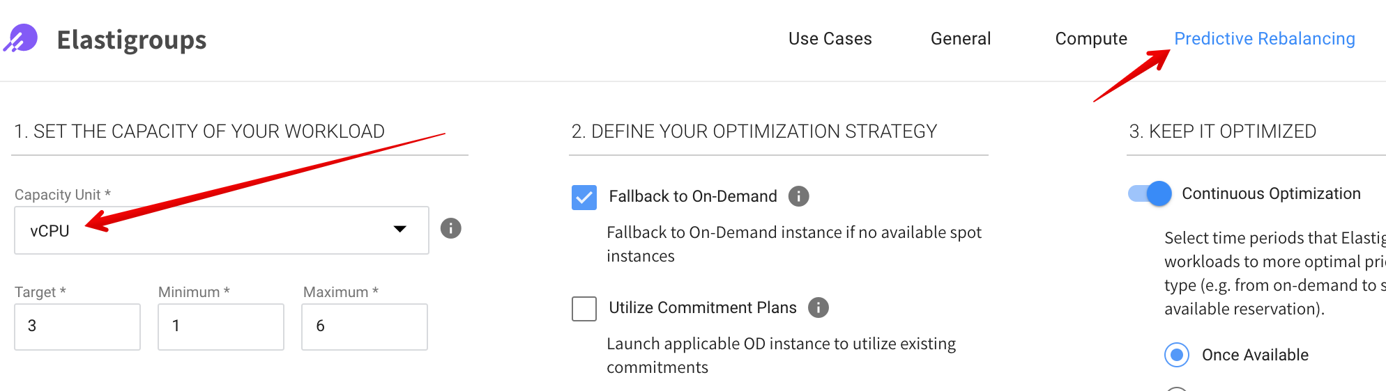 3. In the Predictive Rebalancing tab, set Capacity Unit to vCPU.